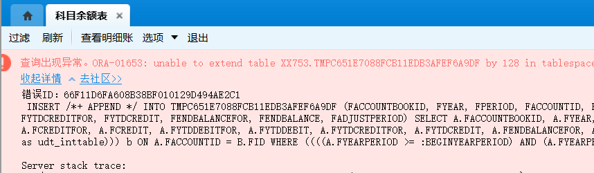 二、错误代码:ORA-01658,0RA-01653 (跨年查科目余额)